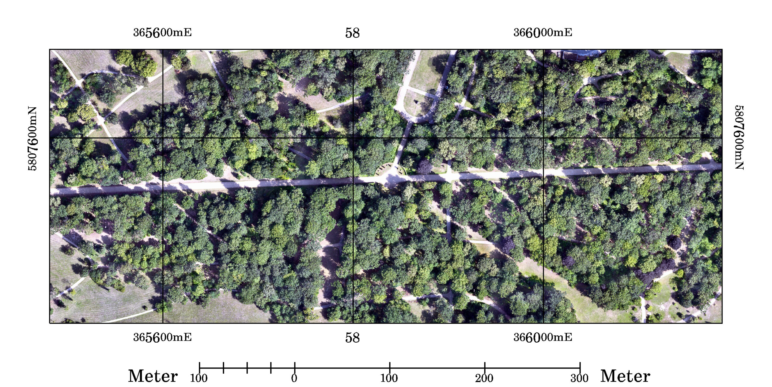 Fig.1: M3M RGB spectral True Ortho mosaic Park Sanssouci in June 2025, spatial resolution 10cm, WGS84 UTM33.